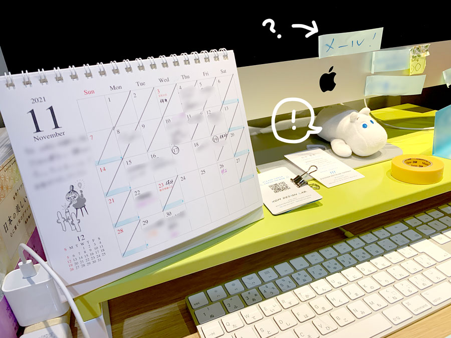 (付箋の「メール!」が気になりますね)