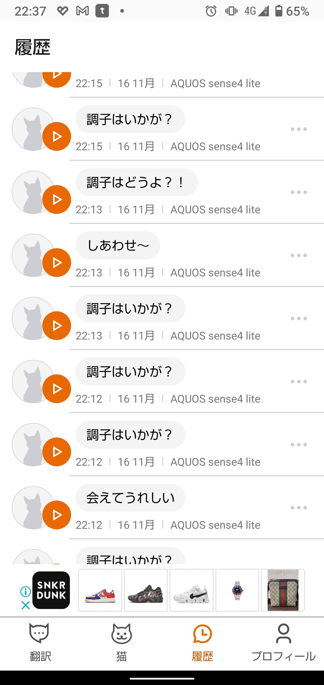 猫の鳴き声を翻訳するアプリですが