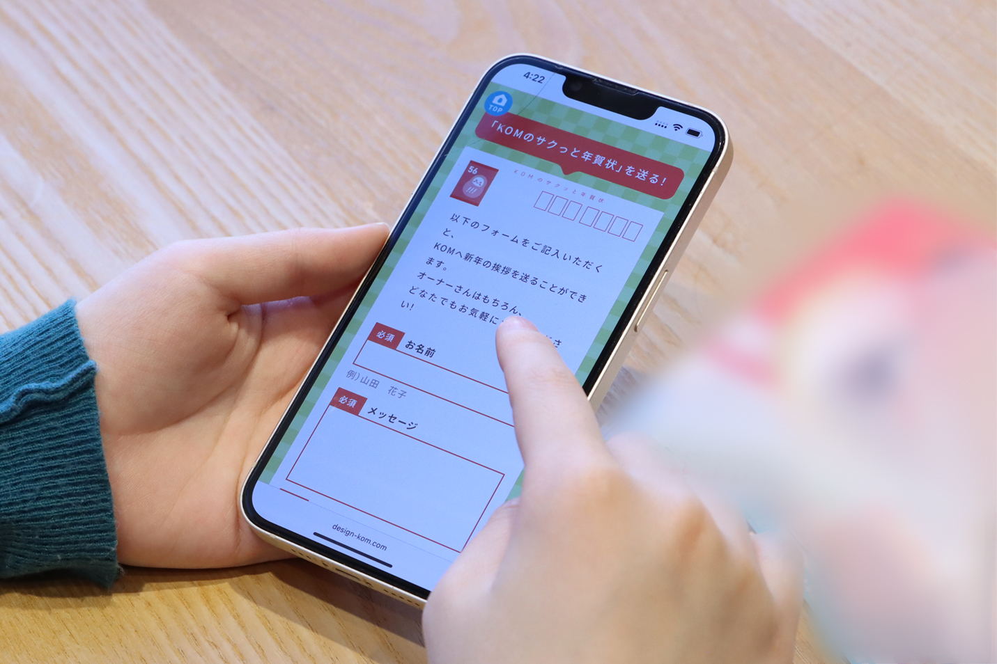年賀状のやり取りの手間を軽減しながら、気軽にKOMに新年の挨拶を送ることが出来ます!
