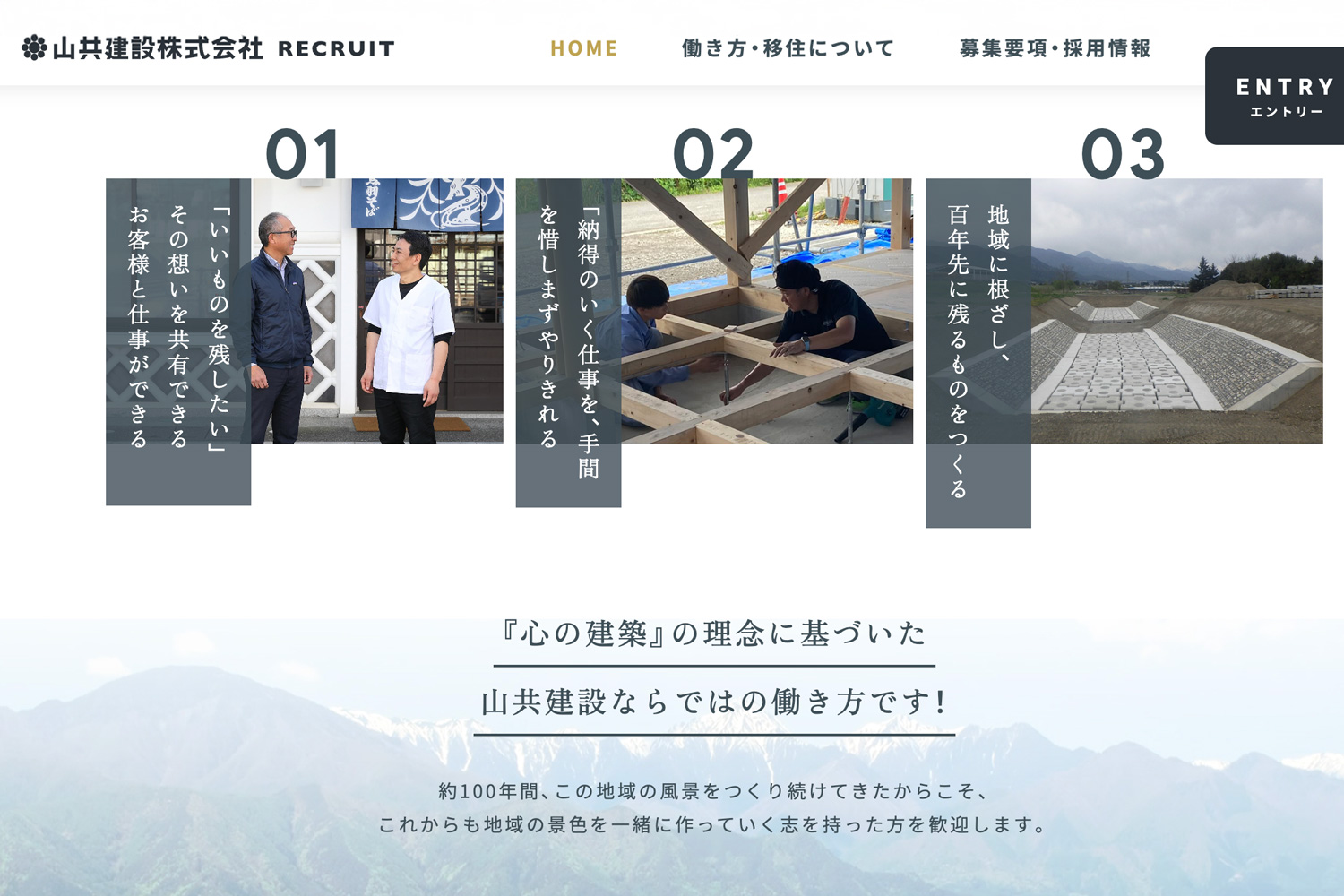働き方の紹介は、山共建設で働くことで得られる仕事のやりがいや価値観に加え、信州という土地だからこそ叶う働き方・暮らし方を紹介しています!!