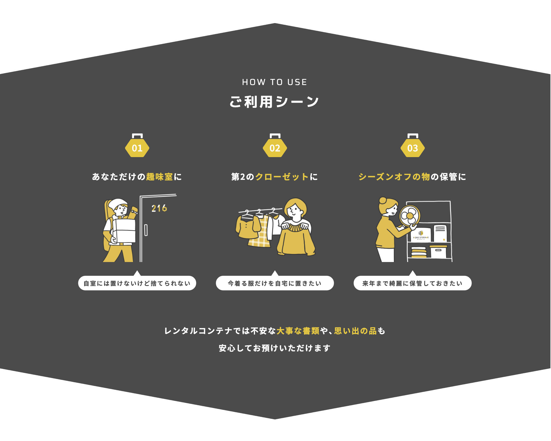 「ひとつひとつの大切なモノを預けられるあなただけの場所」というコンセプトを軸に、