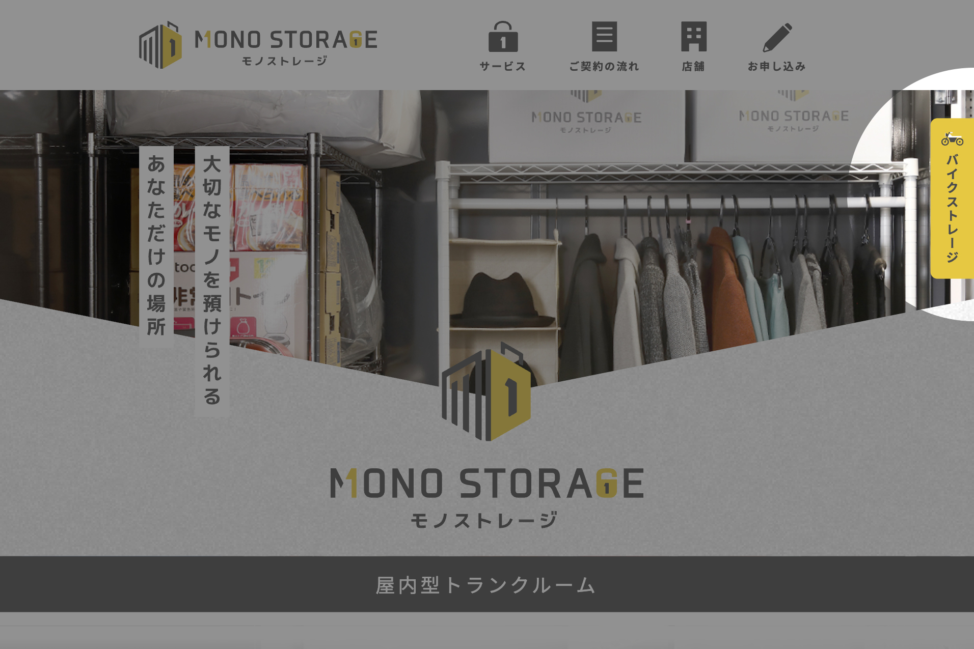 安城市にオープンした屋内型トランクルームのWEBサイト_モノストレージプロジェクト