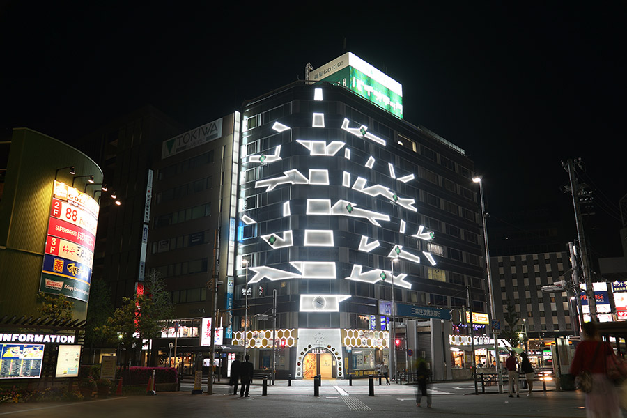 金山駅北口を出てすぐに現れる、大きな光る木…いや、ビル!
