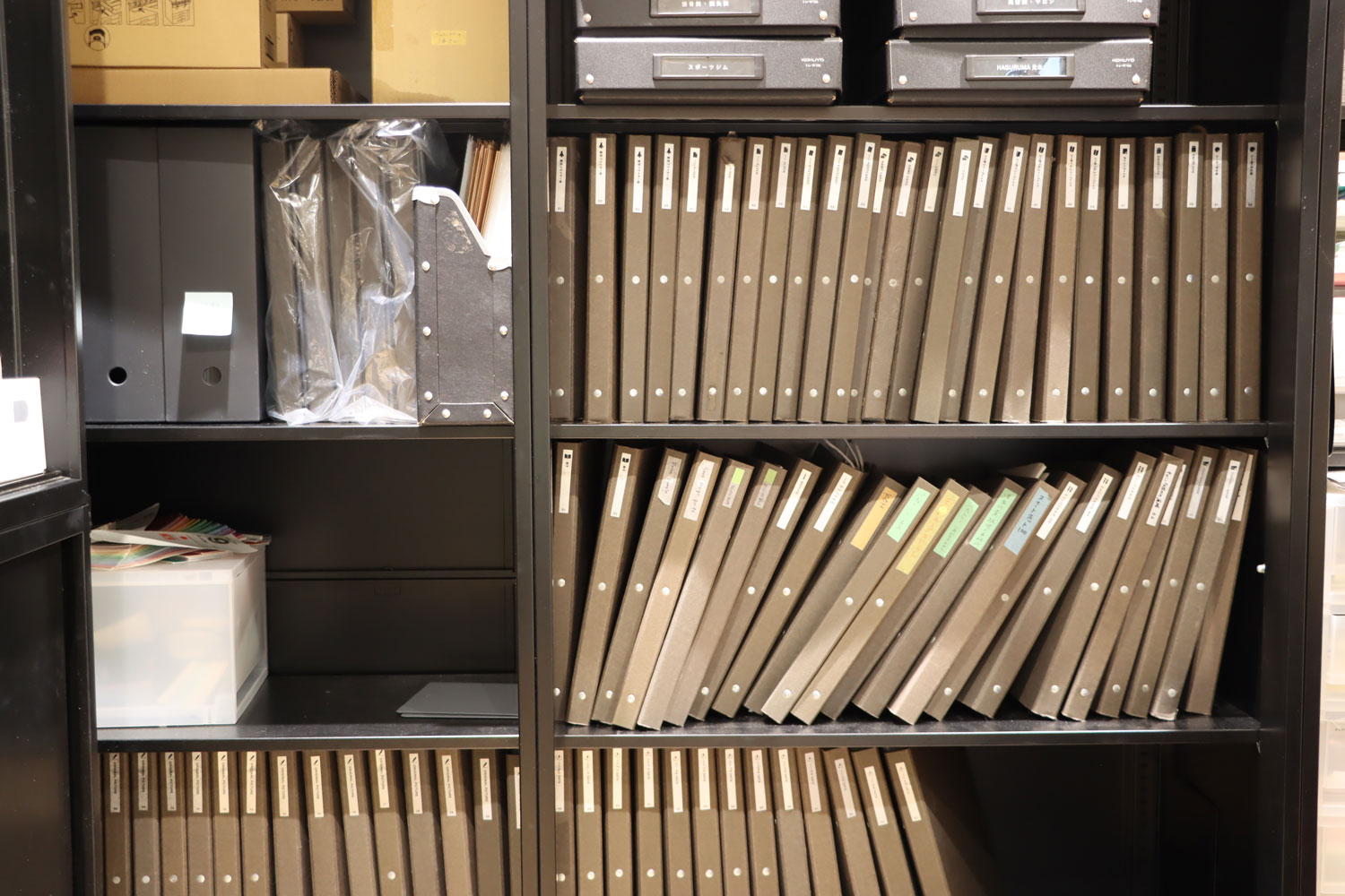 ↑KOMの棚にはたくさんの実績がカテゴリごとにファイリングされています!
