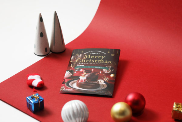 パティスリーしあわせのえきの2025年のクリスマスケーキをご紹介するリーフレットです。