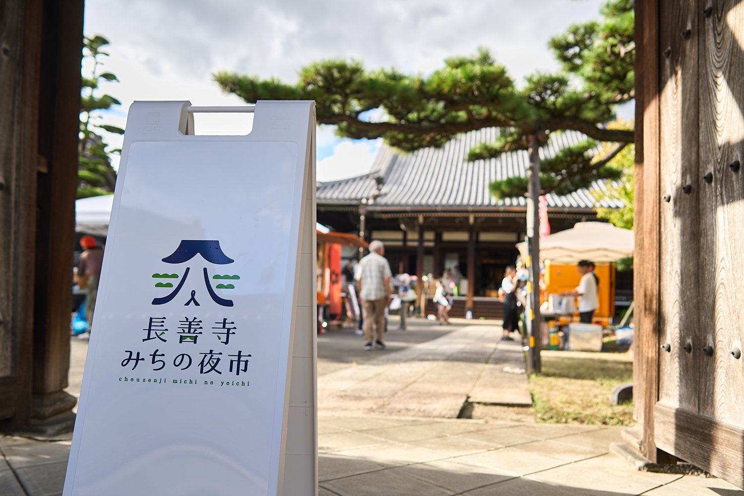 「みちの夜市」では、普段は長善寺に訪れる機会がない人も様々な方面から長善寺に集うので、分かれ道から長善寺に繋がる道をイメージしました。