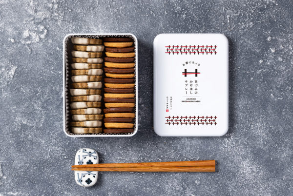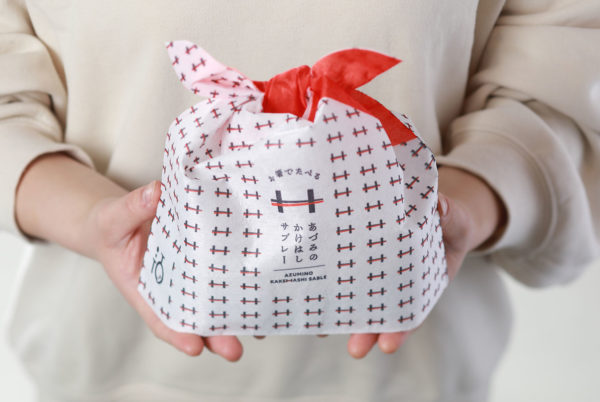 「お箸で食べる」をコンセプトにした商品であることから、お弁当を連想させる巾着袋をクッキー缶の外袋として採用しました。