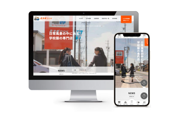 地域に根ざし、長く「日常に制服のある風景」を守り続けてきた同社の信頼感が伝わるよう、全体のフォトスタイリングとデザインを統一しています。